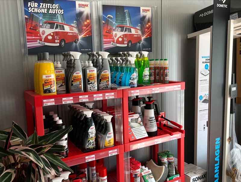 Zudem haben wir in unseren Shop einiges an Pflegeprodukte der Fa. Sonax vorrätig. Dort finden Sie auch vieles für Ihren Camper und einen gelungenen Urlaub.